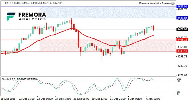 Gold continues to trade at elevated levels, holding near the upper range despite stable equity sentiment and a steady US Dollar. Persistent geopolitical uncertainty linked to Venezuela continues to provide an underlying bid, even as markets avoid broader risk-off positioning.