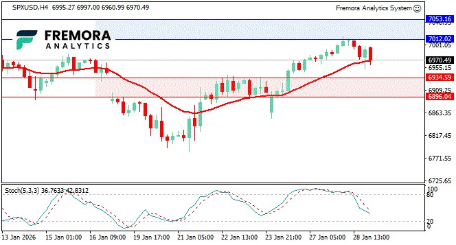 The failure to sustain levels above 7,000 signals profit-taking rather than trend reversal. The index remains technically constructive, but follow-through depends on earnings confirmation and stability in rates.