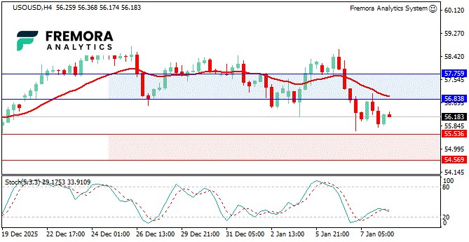 WTI crude remains under pressure after President Trump confirmed plans for large Venezuelan oil transfers to the US, intensifying oversupply concerns. Markets are increasingly focused on long-term production potential rather than short-term geopolitical disruption.