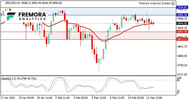 SPX is holding near 6945.65, stabilizing after an initial push higher that faded as traders digested the “headline vs reality” split in the labor report. The January payroll beat looked supportive, but major downward revisions to 2025 employment keep a question mark over growth momentum.
