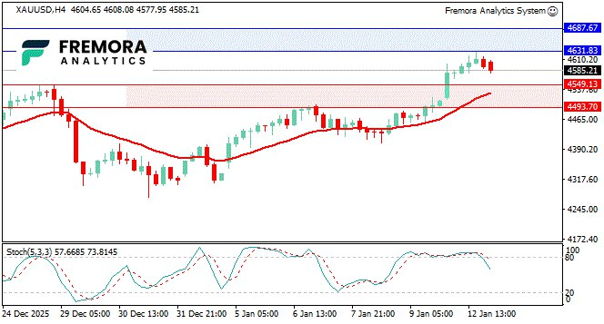 Gold is still in control structurally, but it may need consolidation before the next extension. CPI can create a two-way spike: soft inflation supports another push toward 4632+, while a hot print risks a pullback toward 4549–4494.
