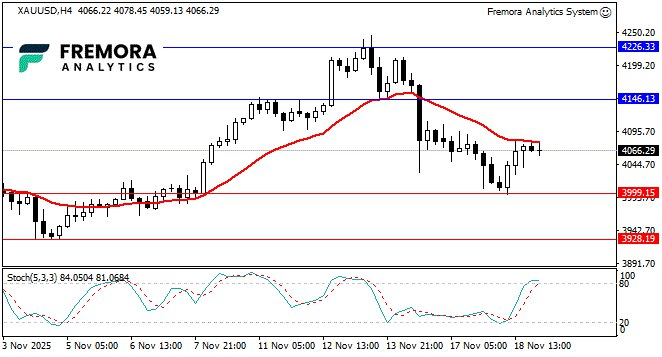 A break below 3999 exposes 3928 and the deeper Fibonacci retracement near $3,975.