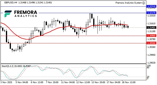 GBP/USD hovered around the 1.3150 area, lacking directional conviction as markets braced for today’s critical UK Inflation Rate. With unemployment rising to 5% and wage growth slowing to 4.6%, any downside inflation surprise would reinforce expectations of a December BoE rate cut.