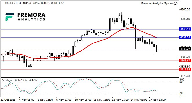 A close below 3965 exposes deeper retracements toward 3915 and the $3,975 Fibonacci zone.
