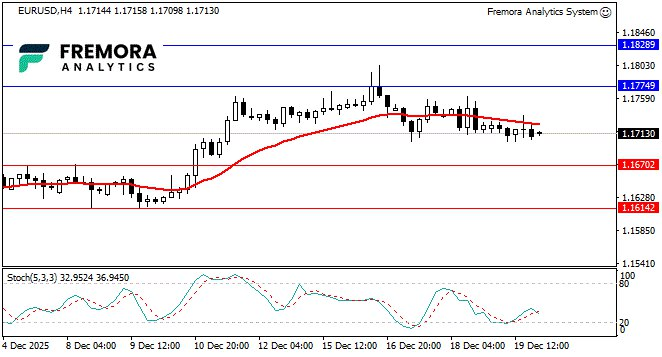 EUR/USD is compressing into a narrow range. A reclaim of 1.1775 is needed to revive upside, while failure to hold 1.1670 risks a deeper holiday-driven dip.