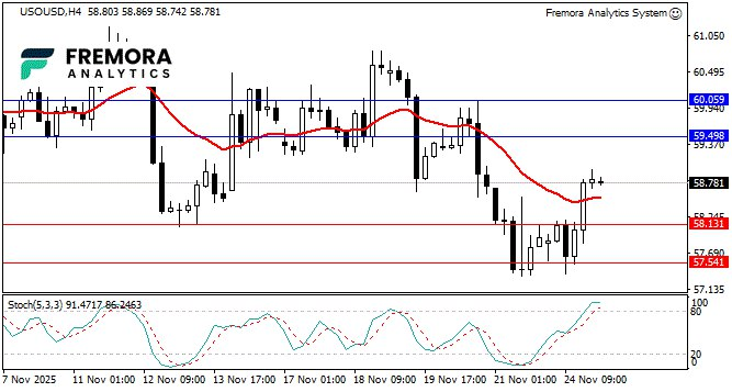 A break above 59.50 opens the door to 60.06, but failure to hold above 58.13 risks a slide back toward 57.54.