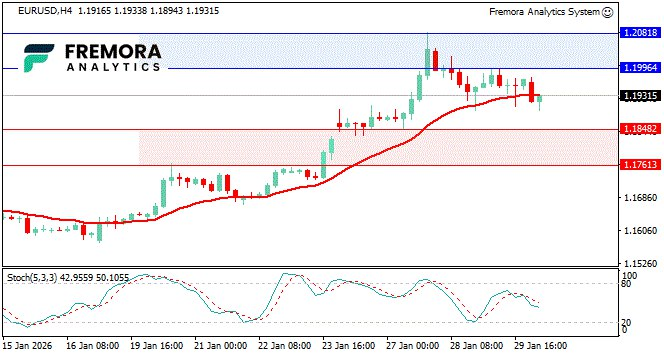 EUR/USD consolidates near 1.1932 as markets absorb President Trump’s unprecedented public assault on Federal Reserve Chair Jerome Powell. While the Dollar Index rebounded slightly to 96.20, the recovery appears technical rather than structural, with political pressure on monetary policy credibility remaining the dominant narrative.