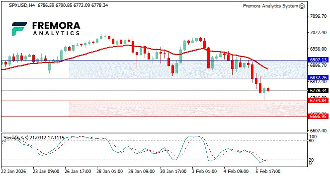 US equities extend their decline as the S&P 500 slides toward 6778, deepening losses for the year. Selling pressure remains concentrated in technology, but growing evidence of labor market deterioration is now amplifying broader recession fears.