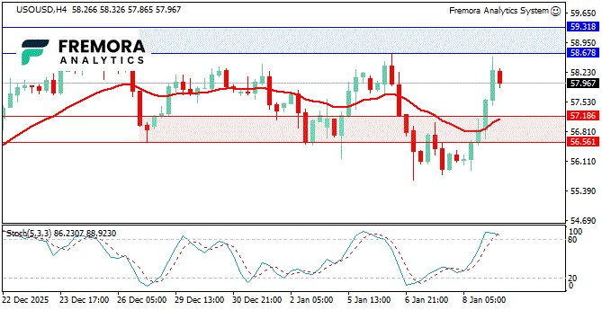 WTI posted a strong rebound toward $58 after earlier weakness tied to Venezuelan oil transfer headlines. The rally suggests the market is questioning the immediacy and certainty of those barrels impacting near-term balances. With crude and Brent both jumping more than 4%, traders are leaning back into the upside—but Friday’s NFP can still shift demand expectations quickly.