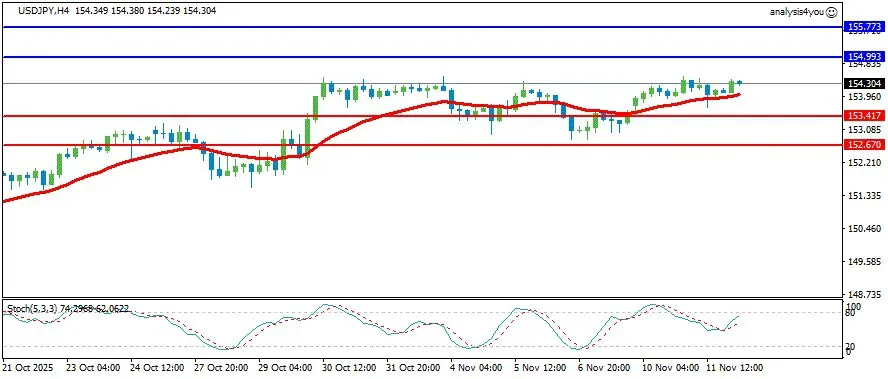 Targets: 154.99 resistance first, then 155.77 if upward momentum continues